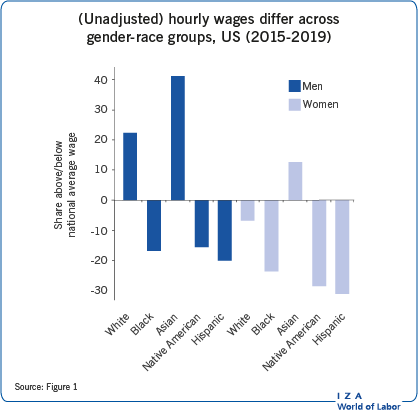 多くの国において、学歴や職務経験など賃金に関連する特性を考慮しても、女性の平均賃金は男性を下回る。しかし、女性と男性はそれぞれ同質の集団ではない。人種・民族的、あるいは性的マイノリティの女性の経験は、多数派の女性やマイノリティの男性とは異なっている。それは、程度の異なる差別や特権に直面している、あるいは労働に関連する特性自体が異なるためである。また、年齢や社会階級も労働の成果に影響を及ぼす。したがって効果的な政策対応には、集団内の多様性を考慮することが求められる。