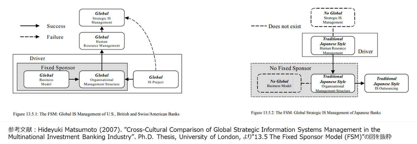 その結果、欧米系の投資銀行では、グローバルレベルでビジネスモデル構築、組織変更、人事管理の要素を全て統括するプロジェクトのスポンサーが「確定」することにより、グローバルITプロジェクトがダイナミックに推進され、全て成功に導かれている。これに対し、日本の投資銀行では、スポンサーが確定しないまま、ビジネスモデル、組織、人事管理に統制が持てないまま進むことで、グローバルITプロジェクトが失敗に終わるメカニズムでした。この成功と失敗を分けたメカニズムを明示するFixed Sponsor Model(スポンサー確定モデル)に基づき、ニューヨーク金融市場の強靭な構造が明らかになりました。